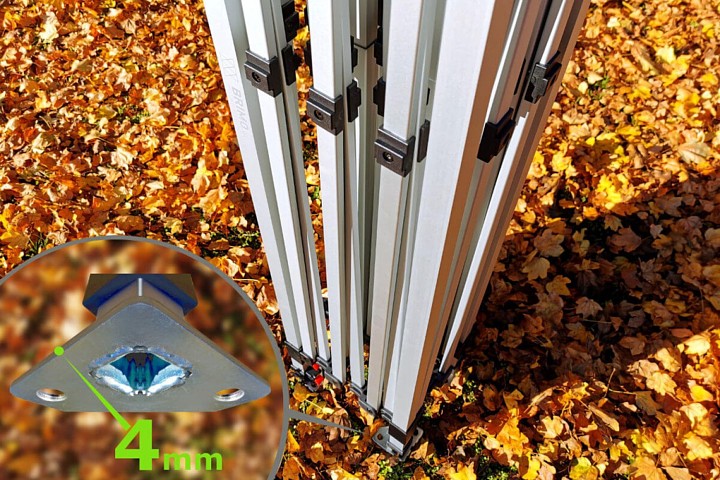 - Modelo Exclusive de aluminio, utilizado con vientos de hasta 60 km/h. Patas con orificios para anclaje al suelo mediante clavijas - ¡gratis!