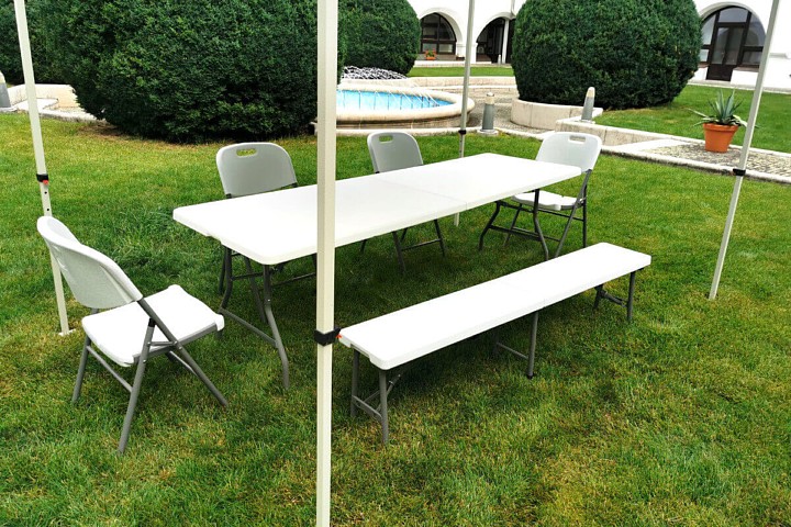 Los conocidos conjuntos de cerveza están quedando en el pasado, también lo está el tratamiento de elementos de madera. El banco plegable de plástico es uno de los principales productos en el mundo de los muebles plegables para la gastronomía. Los festivales tradicionales relacionados con la comida, exposiciones o barbacoas ya no están completos sin muebles plegables. Para tales fines y muchos otros se creó el banco plegable, para garantizar un número suficiente de lugares para sentarse, facilitar su despliegue y reducir el mantenimiento al mínimo.