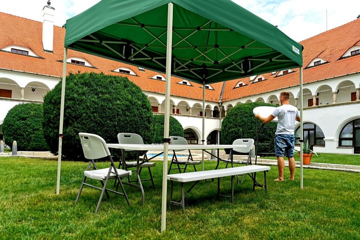 - Montaje ultrarrápido: ¡Una sola persona puede montar y desmontar la carpa en tan solo 40 segundos! Ahorre un tiempo y energía preciosos en cada evento: el manejo es rápido y sin ningún esfuerzo.