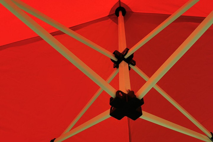 La estructura de acero está hecha de perfiles gruesos en color marfil. Una pintura especial en polvo protege el metal contra la corrosión. La superficie es resistente a los arañazos. Cada color de tela combina bien con el color de la estructura. Ofrecemos las carpas en siete colores. La calidad del material es superior al estándar.