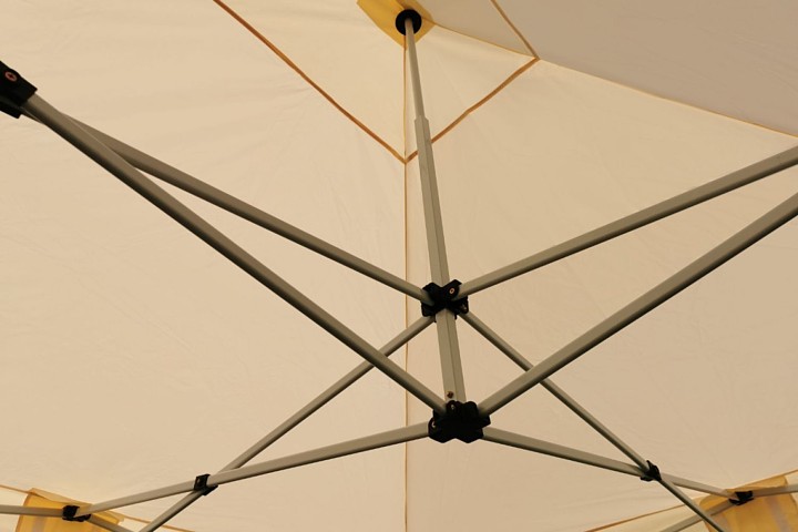 La densa tela de poliéster es el corazón de la lona. La capa interior de PVC del techo crea una sombra perfecta. Cada unión está adicionalmente sellada, haciendo que la carpa plegable personalizada sea 100% impermeable. También es ideal para almacenar productos en ferias, si todos tus artículos no caben en los espacios de exhibición, puedes guardarlos de forma segura en una carpa adjunta.