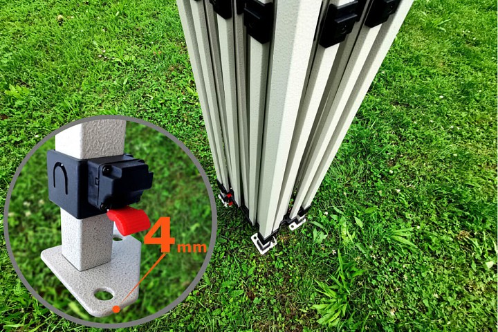 - Resistencia al viento: El modelo de superacero resiste vientos de hasta 40 km/h. Las patas de la estructura están equipadas con orificios para un anclaje firme. Recibirá las piquetas de anclaje de forma totalmente gratuita con la carpa para su máxima seguridad.