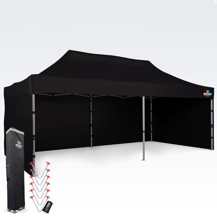- Altura total: Gracias a la impresionante altura de 355 a 395 cm, su carpa será imposible de pasar por alto incluso desde gran distancia. Esto garantiza una excelente visibilidad de su presentación y logotipo en cada evento.