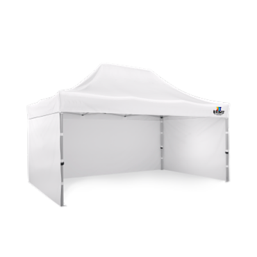 El cenador está equipado con una lona 100% impermeable, lo que lo hace perfecto para eventos regulares como la venta de productos o la presentación de servicios.