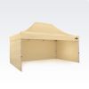 Carpas plegables de aluminio 3x4,5m son ideales para impresión, lo que las convierte en las carpas de presentación más populares. La cara frontal abierta de 4,5 m de ancho proporciona suficiente espacio para la venta de productos. Gracias a la tela de poliéster de tejido denso y la capa de PVC, que asegura una excelente sombra, la luz solar no dañará ni destruirá tus productos bajo la carpa.
