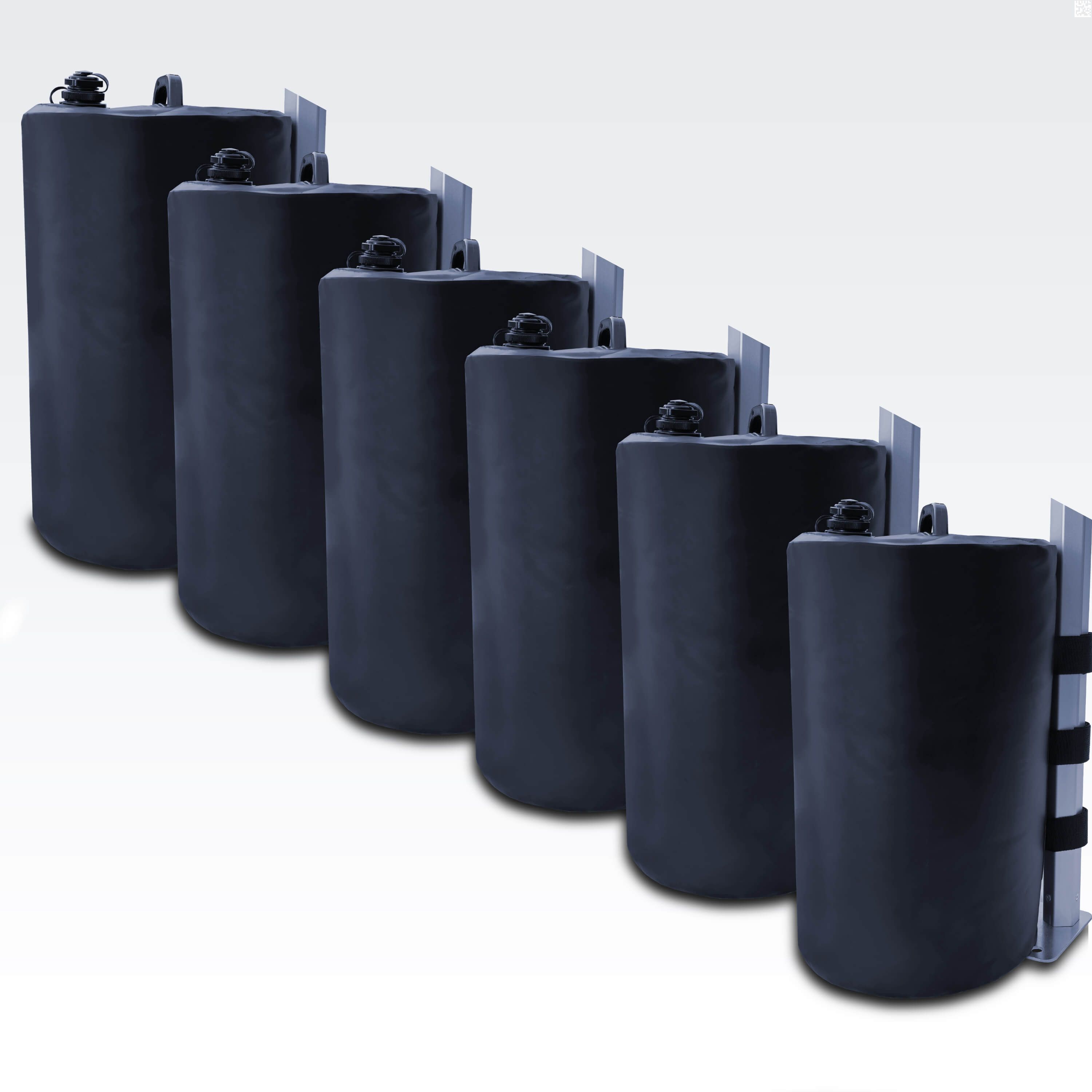 Las pesas de agua son la opción ideal para una carga rápida y efectiva de los gazebos plegables. Son ligeras y compactas para el transporte cuando están vacías, y su llenado con agua es rápido y sencillo. En comparación con las pesas metálicas o de hormigón, ofrecen mayor flexibilidad, mejor manipulación y un montaje más fácil. Con las pesas de agua, puedes evitar montajes complicados y que consumen mucho tiempo, lo que ahorra tiempo y energía.