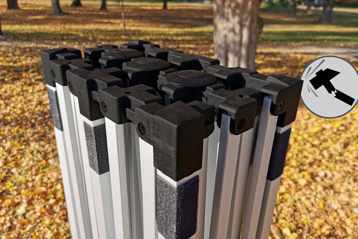 El diseño moderno te satisfará. La estructura de aluminio se caracteriza por su peso ultraligero, lo que facilita el transporte de la carpa. Gracias al sistema de despliegue automático, la carpa de 3x6m se puede montar y desmontar fácilmente en cualquier lugar. No se requieren herramientas adicionales. Las piezas se pueden reemplazar fácilmente gracias a las conexiones atornilladas.