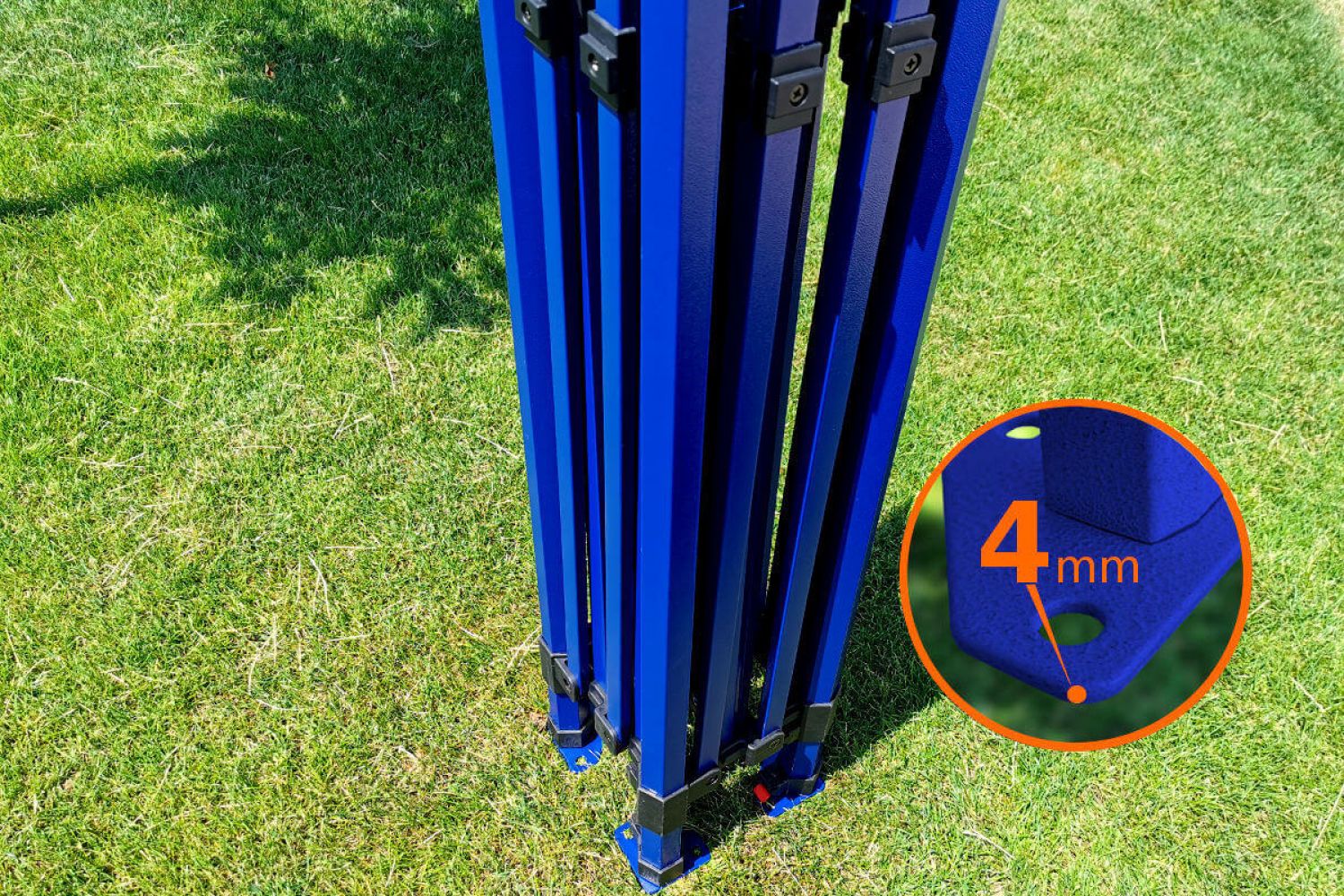 - Modelo Exclusive de acero utilizado con vientos de hasta 60 km/h. Patas con orificios para anclaje al suelo mediante clavijas - ¡gratis!