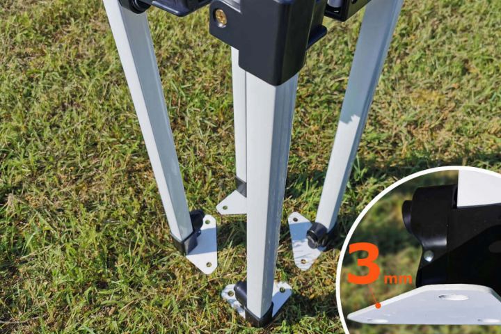 - Resistencia al viento: El modelo de superacero resiste vientos de hasta 40 km/h. Las patas de la estructura están equipadas con orificios para un anclaje firme. Recibirá las piquetas de anclaje de forma totalmente gratuita con la carpa para su máxima seguridad.