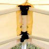 - Material del techo: poliéster 100% impermeable (350 g/m²) con recubrimiento de PVC. Es extremadamente resistente al desgarro, protege contra la radiación UV y garantiza una protección fiable tanto contra la lluvia como contra el sol.
