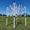 La tela de poliéster del techo está complementada en su parte interior con una capa de PVC. Cada costura está doblemente cosida y adicionalmente sellada con cinta adhesiva. Las carpas plegables con impresión pueden utilizarse en cualquier lugar del jardín, como cubierta en la terraza, e incluso en exposiciones o ferias como carpas promocionales. Una gran ventaja es la estructura automática, que se puede montar fácilmente en segundos.