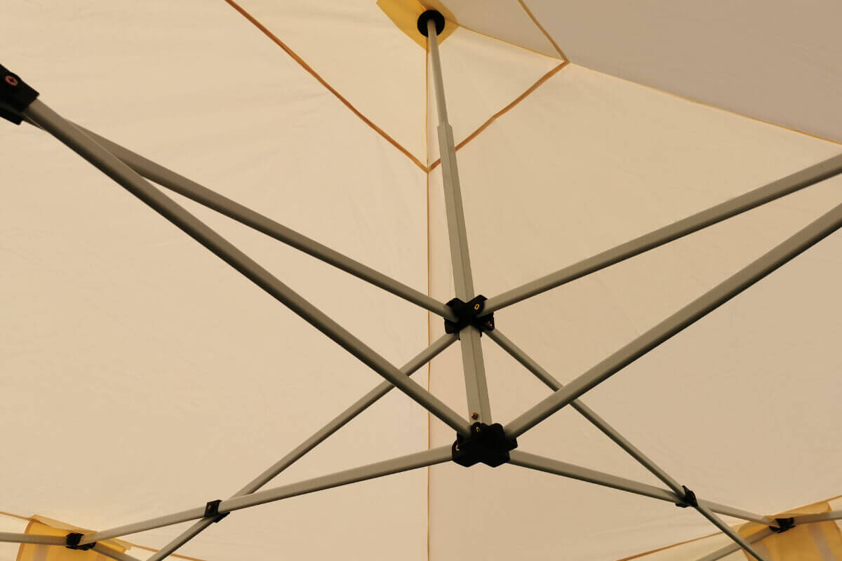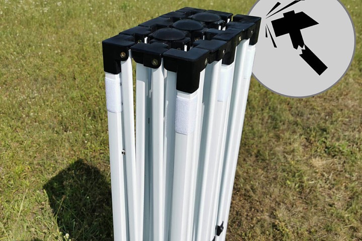 El diseño moderno te satisfará. La estructura de acero es ligera y la carpa plegable para eventos es fácil de transportar. Gracias al sistema de despliegue automático, la carpa plegable para eventos 3x6m se puede montar y desmontar fácilmente en cualquier lugar. No se necesitan herramientas adicionales. Las patas tienen un perfil cuadrado. Cada parte se puede reemplazar fácilmente gracias a las uniones atornilladas.