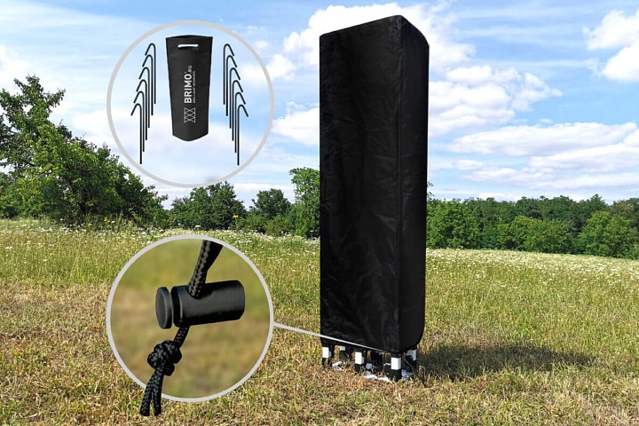 - Modelo Superde acero, utilizado con viento de hasta 50 km/h. Patas con orificios para anclaje al suelo mediante clavijas - ¡gratis!