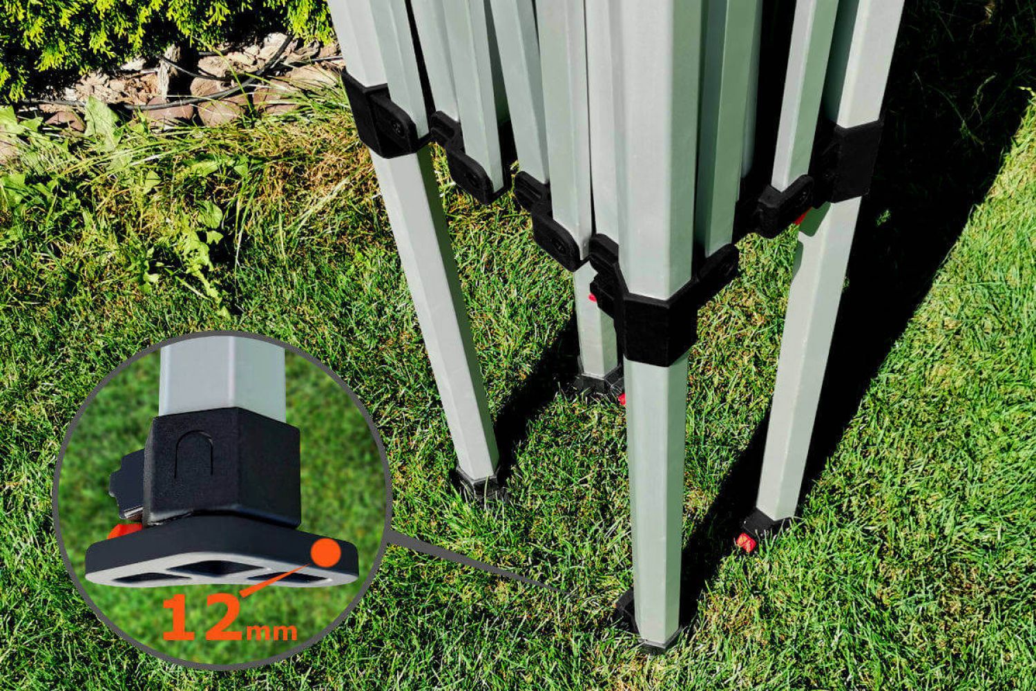 - Resistencia al viento: El modelo de aluminio Exclusive resiste vientos de hasta 60 km/h. Las patas tienen agujeros preparados para un anclaje firme. Recibirá piquetas de anclaje para la carpa de forma totalmente gratuita para su máxima seguridad.